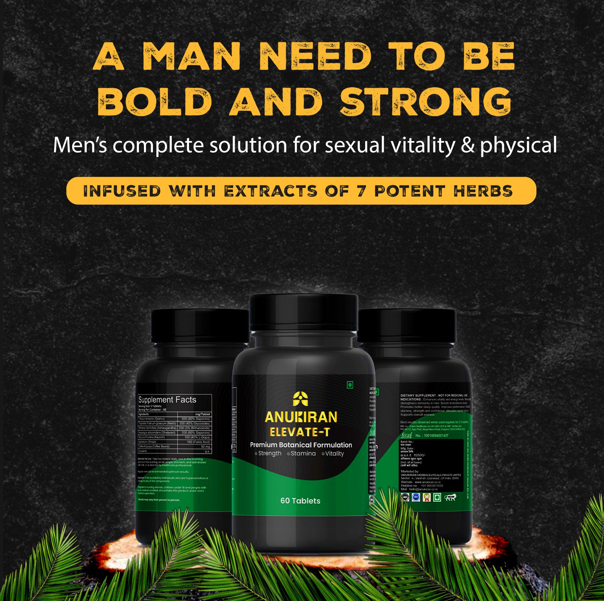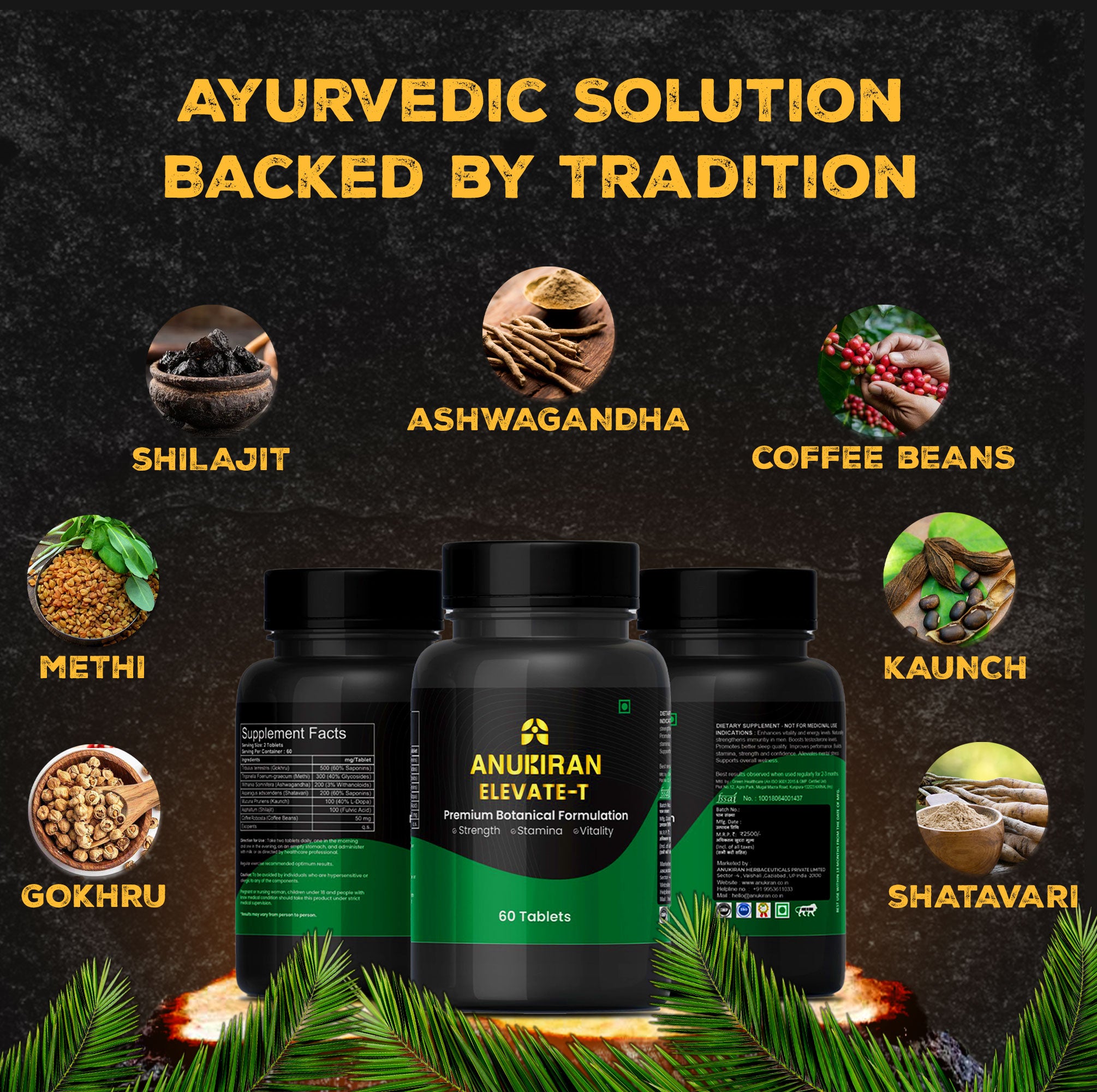Pure Ayurvedic ingredients like Shilajit, Ashwagandha work synergistically for male health.